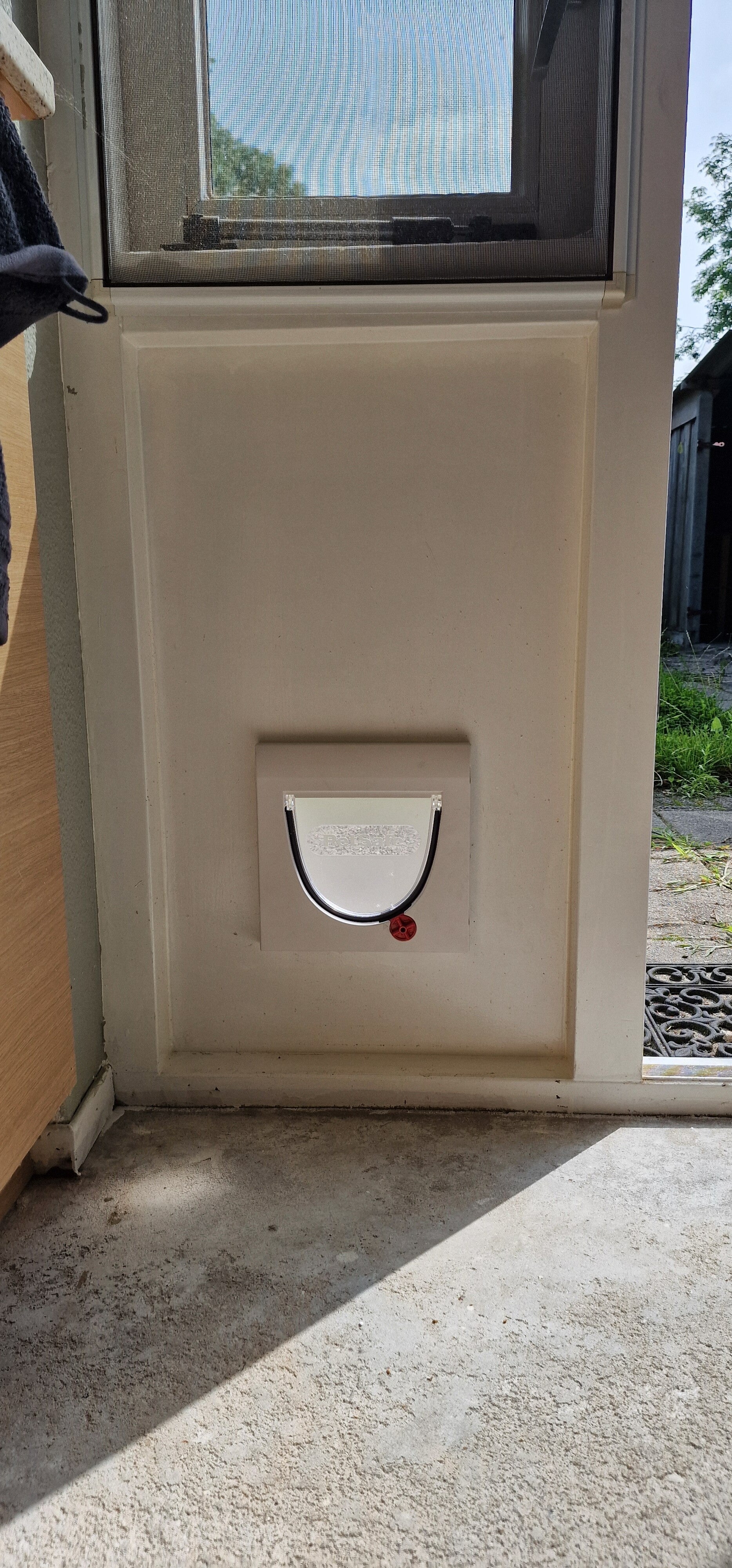 Meerde kattenluikjes gemonteerd in zowel binnen als buitendeuren.