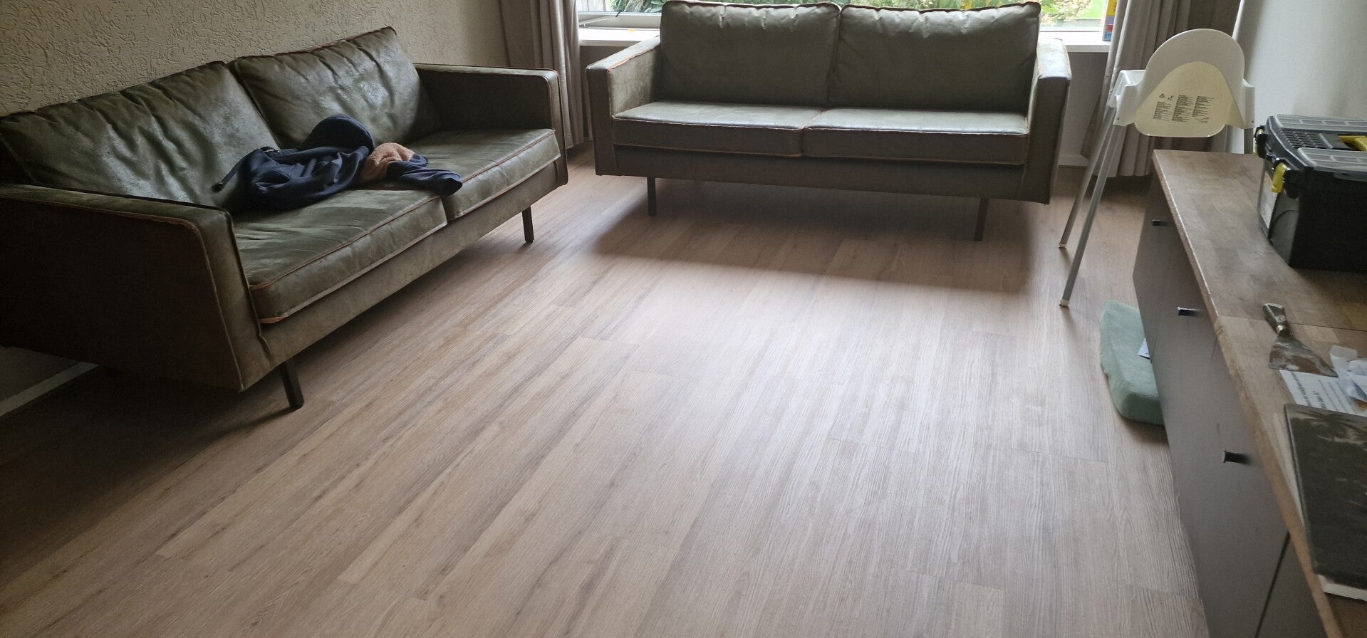 Een nieuwbouwwoning die ik heb moeten voorzien van een pvc vloer en 70mm hoge plinten